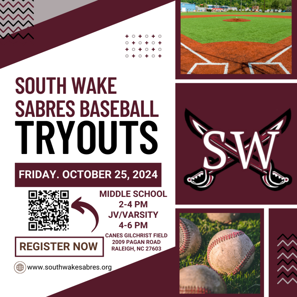 The South Wake Sabres Baseball tryouts for new and returning players are scheduled to be held on Friday, October 25th at the Canes Gilchrist field. The address is 2009 Pagan Road, Raleigh, NC 27603. Invite your homeschool friends with baseball experience!